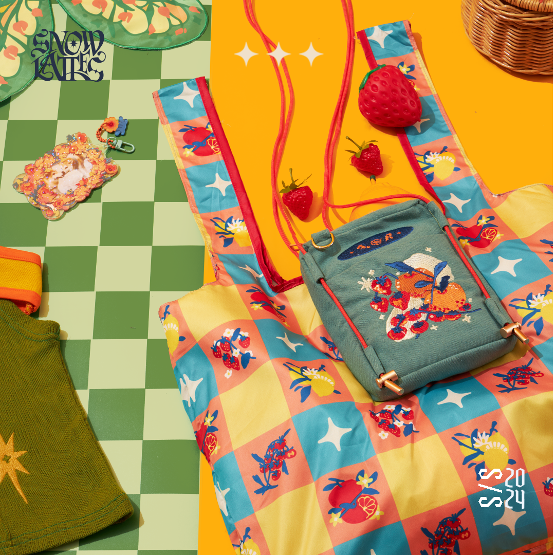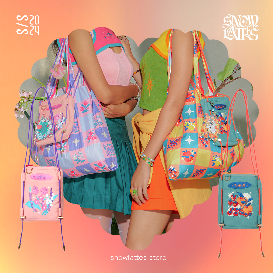 Available in 2 designs — Floral Forager (Pink) and Fruit Forager (Sage). Sizes for the sling bag are 18 x 14 x 4 cm and the shopping bag is 50 x 70cm. The maximum length of the adjustable cord strap is 70cm.