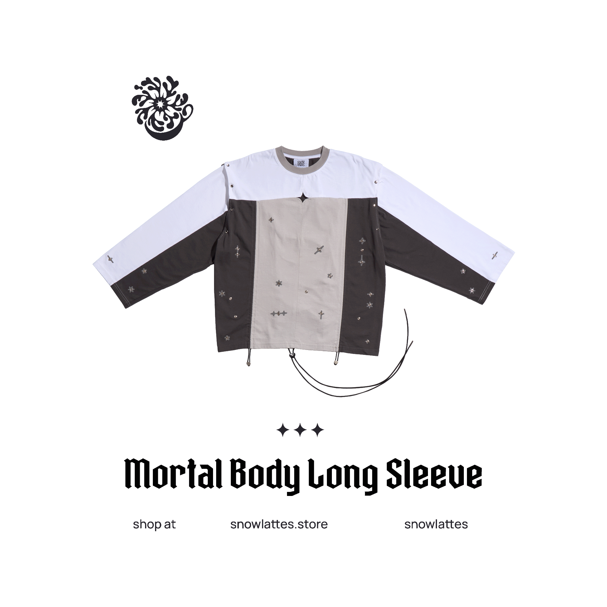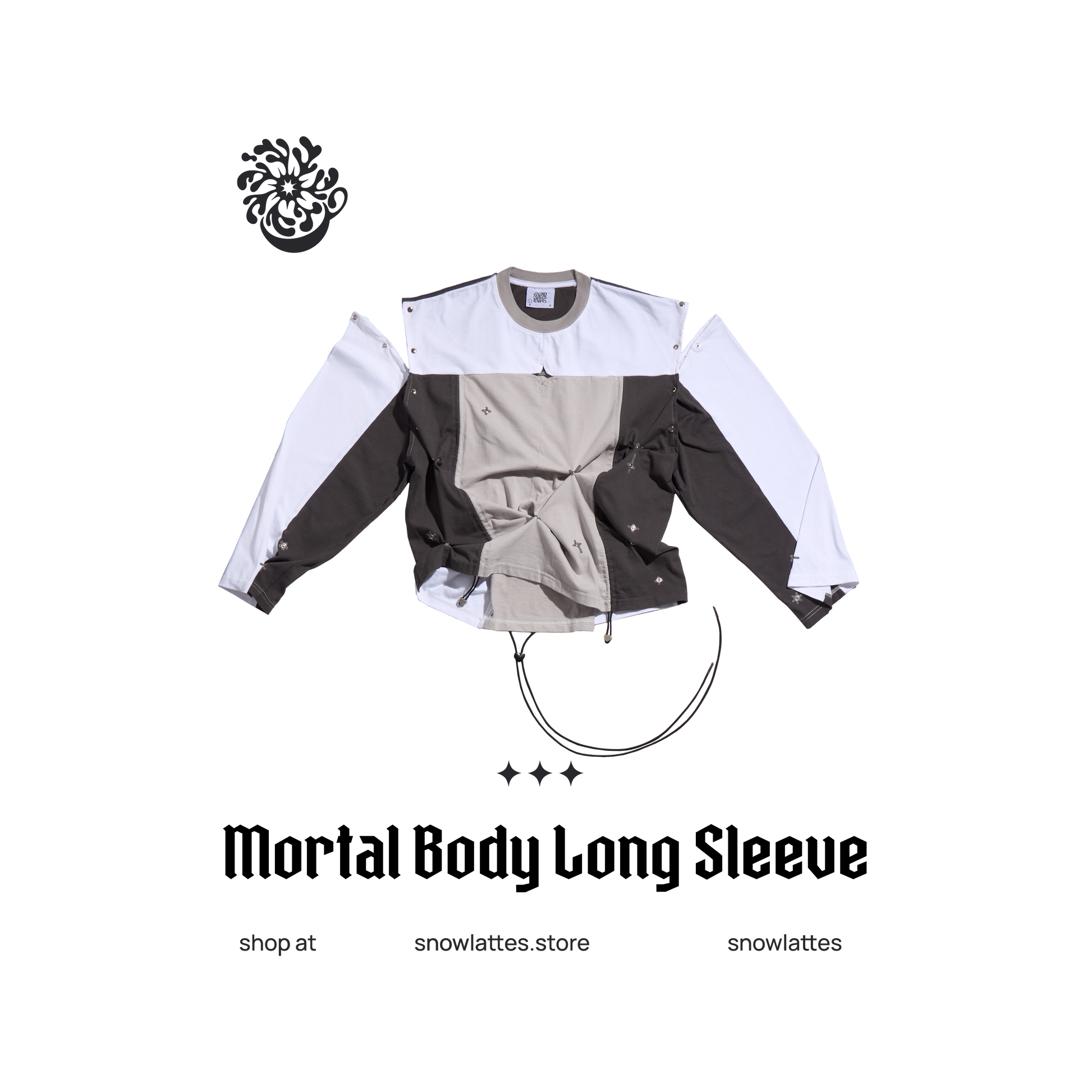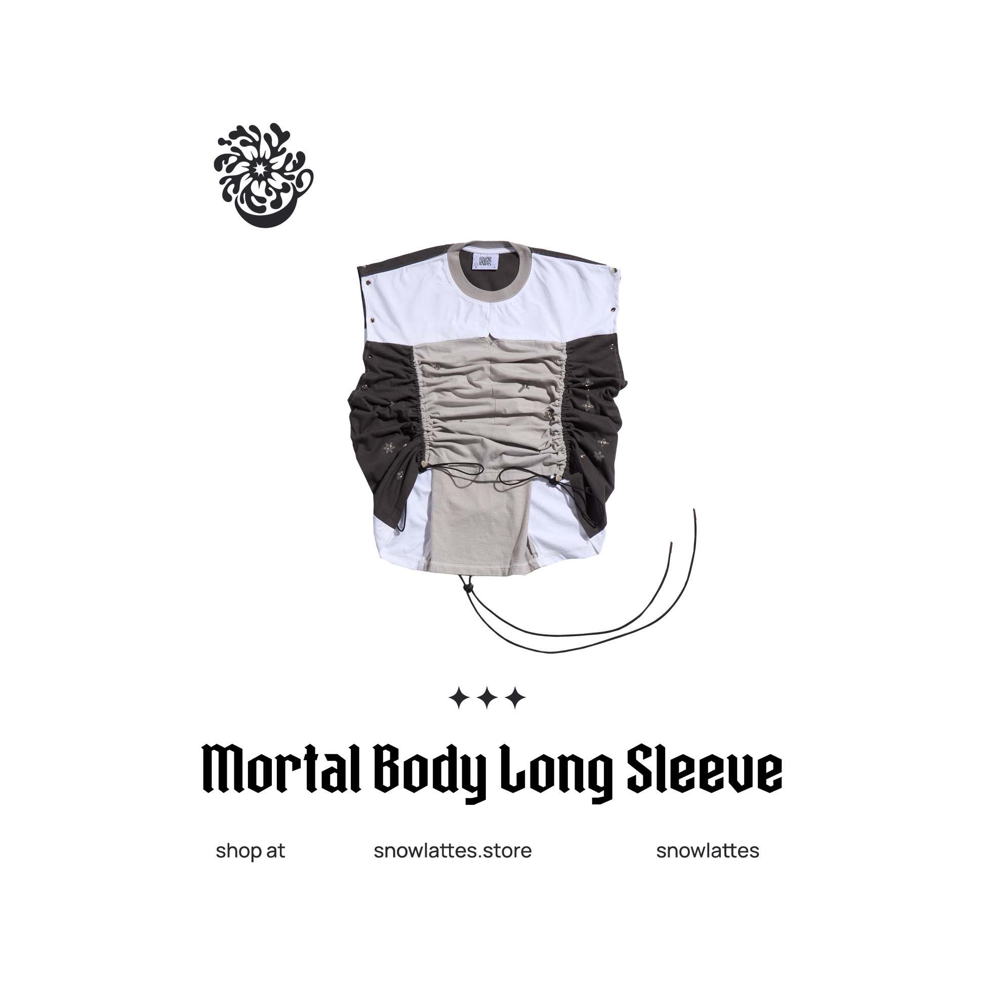 The Mortal Body Long Sleeve is a non-conventional customizable top with a variety of silhouettes for you to experiment with. You can even detach its sleeves for a boxy tank top, snap the buttons for a messier look or crop it by scrunching the sides. The possibilities are endless!