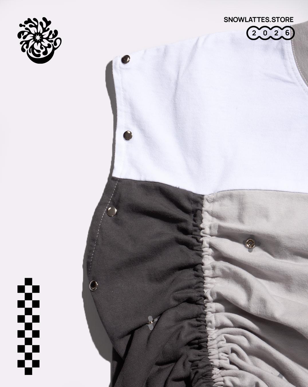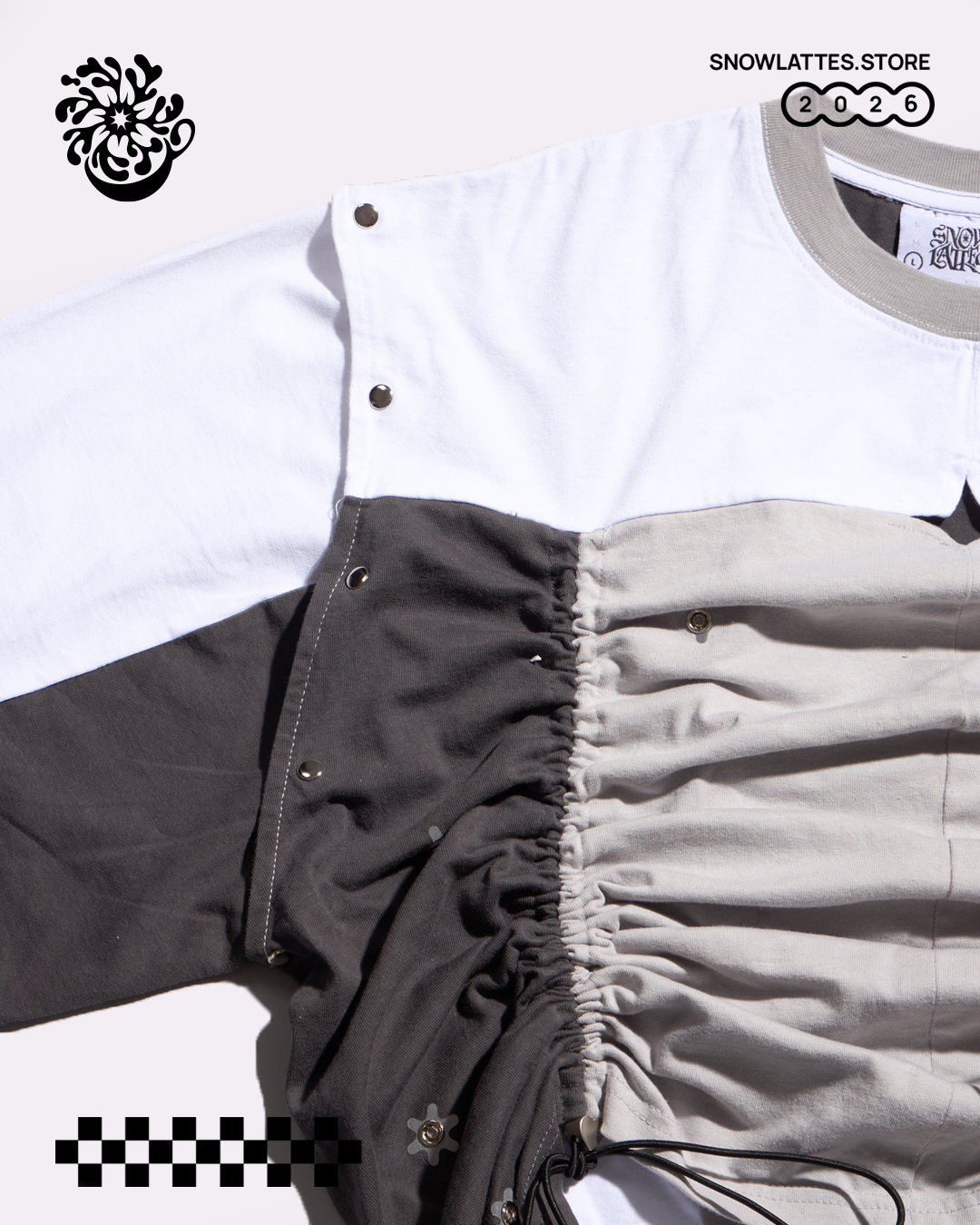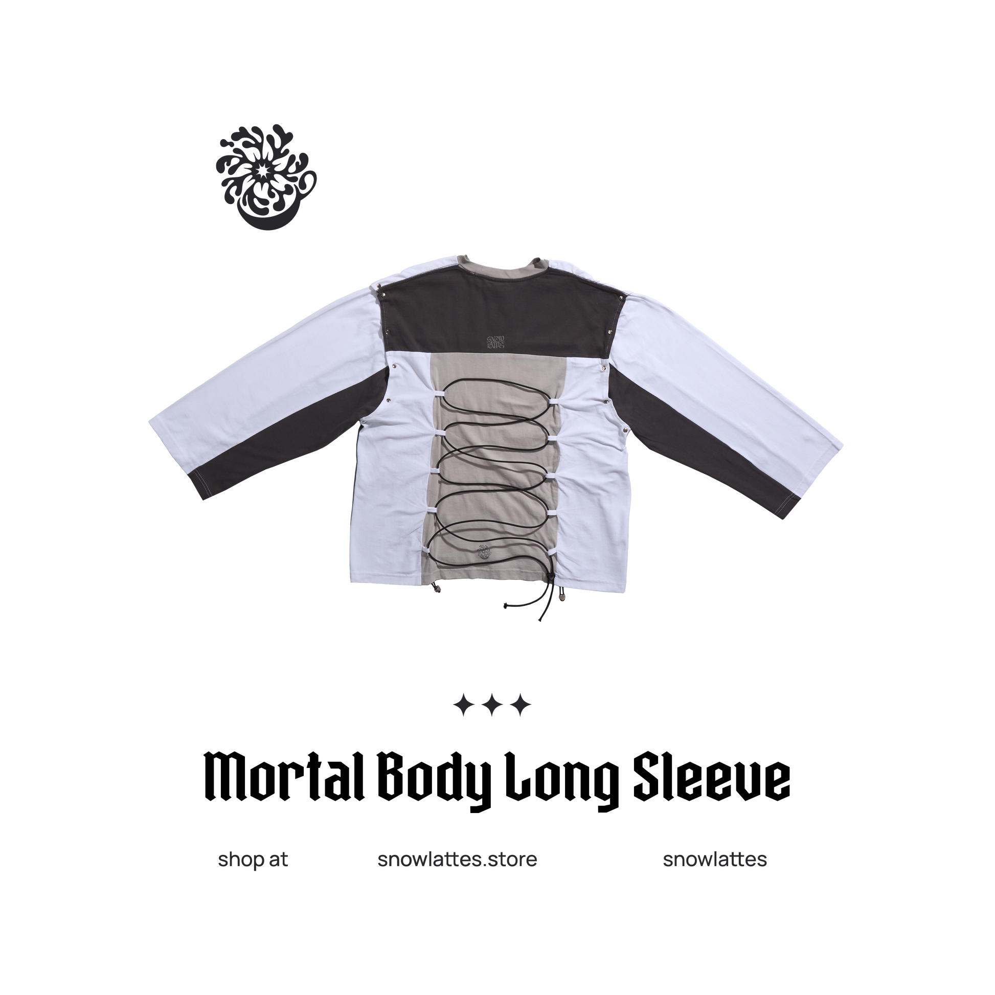 The Mortal Body Long Sleeve is a non-conventional customizable top with a variety of silhouettes for you to experiment with. You can even detach its sleeves for a boxy tank top, snap the buttons for a messier look or crop it by scrunching the sides. The possibilities are endless!