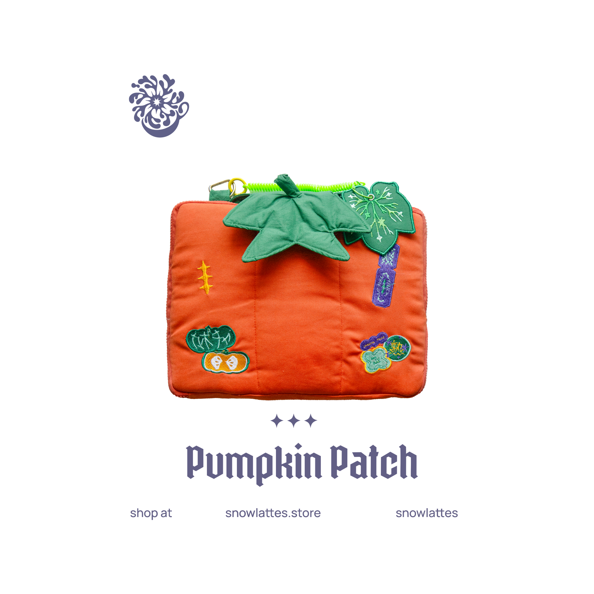 The Pumpkin Patch Tablet Sleeve Cover is available in orange with a leaf embroidery ornament. The sleeve contains 5 compartments and 3 sleeves including a laptop sleeve. It is made of puffy fabric. The sleeve is 12" x 9" (32cm x 24cm), and diagonally it can fit 15” (39cm). It can fit a maximum of 14” laptop with 1cm thickness.
