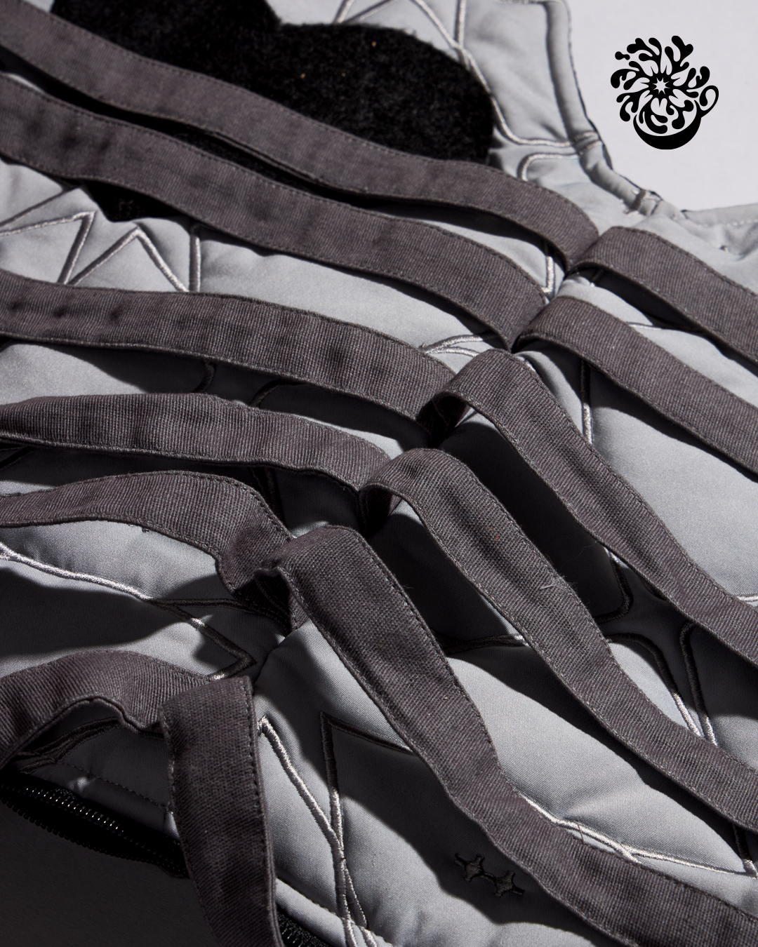The Ribcage Totebag Vest is available in two colors β white and grey. Made with Taslan, Cotton with Velvet pockets is available in S and L. Please make sure to check our Size Guide on the site.