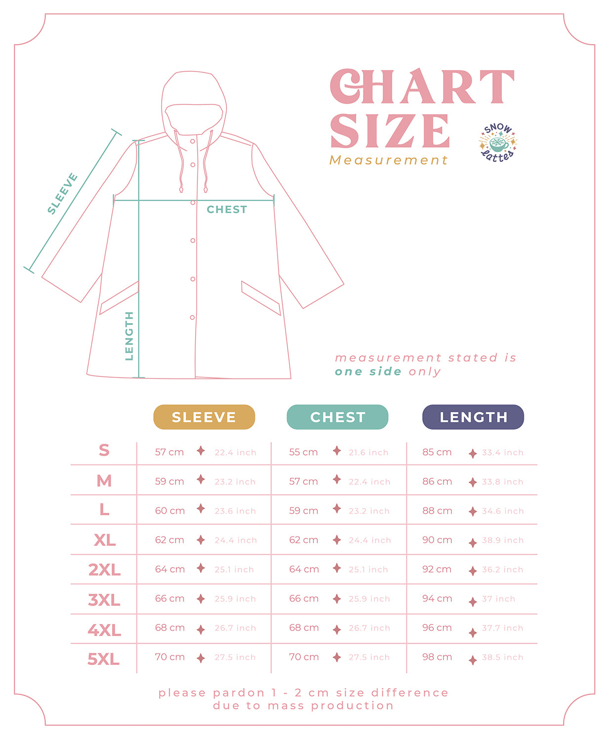 This item will be available for unlimited preorders during the month of October. The timeline will differ from items that are ready stocked. Production will start on the month of November, and shipment of products will span from January to February 2023. Preorder link: https://snowlattes.store/products/pre-order-solar-raincoat